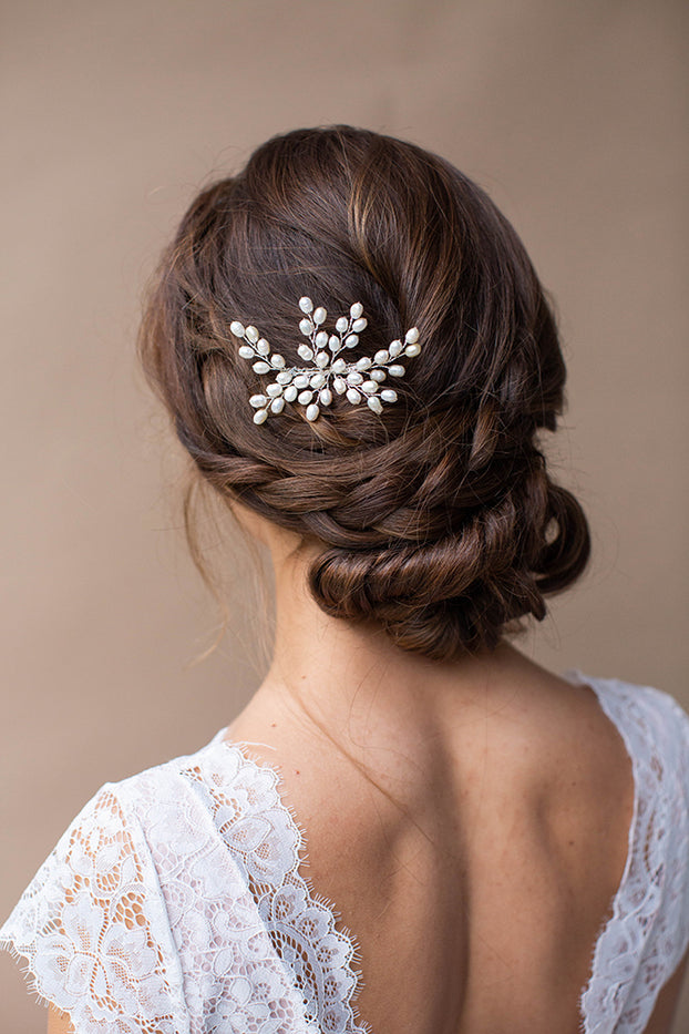 ENOLA COMB - STYLE 5005 Available in gold and silver Hand-wired using sterling silver and 14 k gold vermeil Hand made with fresh water pearls Lightweight Hypoallergenic: Nickel, cadmium and lead-free Item ships in signature keepsake packaging