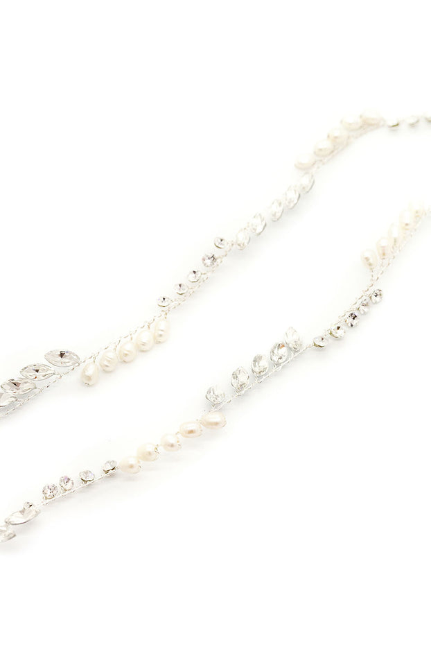 A stunning delicate full circle halo with fresh water pearls and crystals- Available in Classic Silver