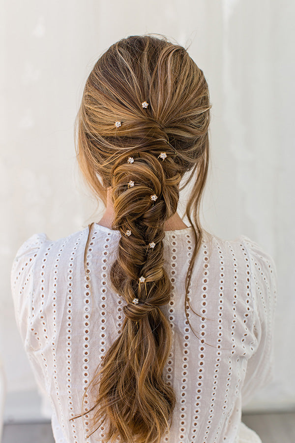 Delicate set of five simple crystal stars to add that extra sparkle to any hairstyle