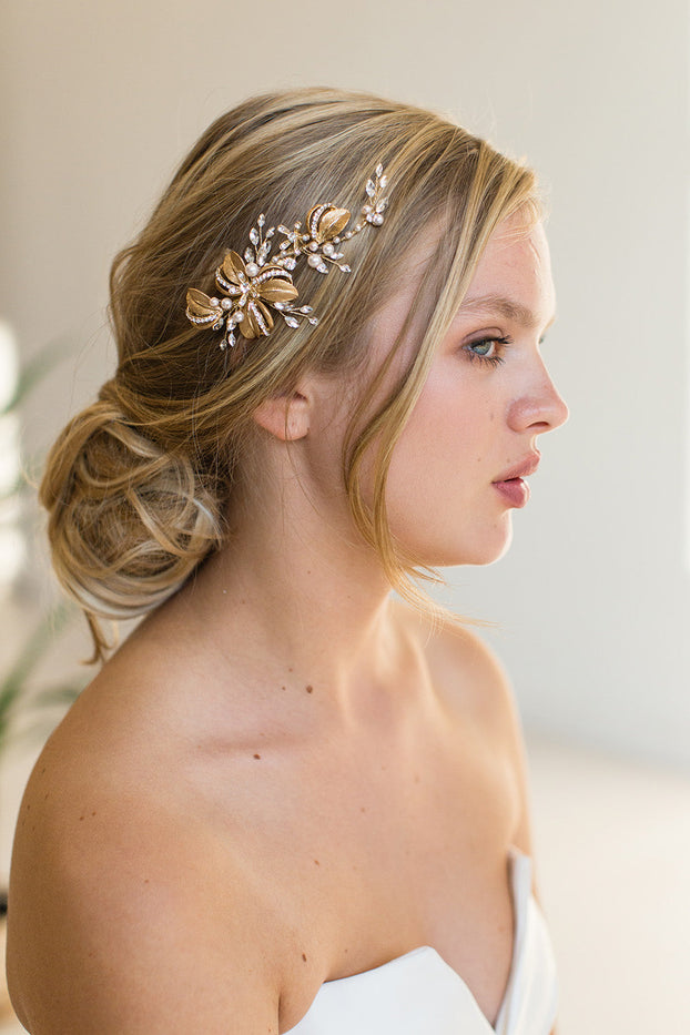 - Hand-wired with Austrian crystals hand-painted leaves. Alligator clip closure for secure fit