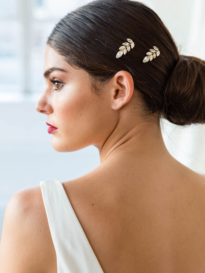 A stunning marquise crystal and ivory stone clustered hair pin set.